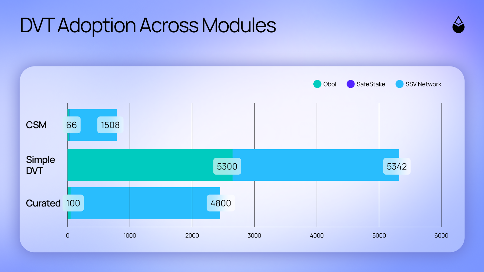 Up until the previous quarter, the Simple DVT and the Community Staking were the only modules within the Lido protocol utilizing Distributed Validator Technology (DVT) through Obol, SafeStake, and the SSV Network solutions.