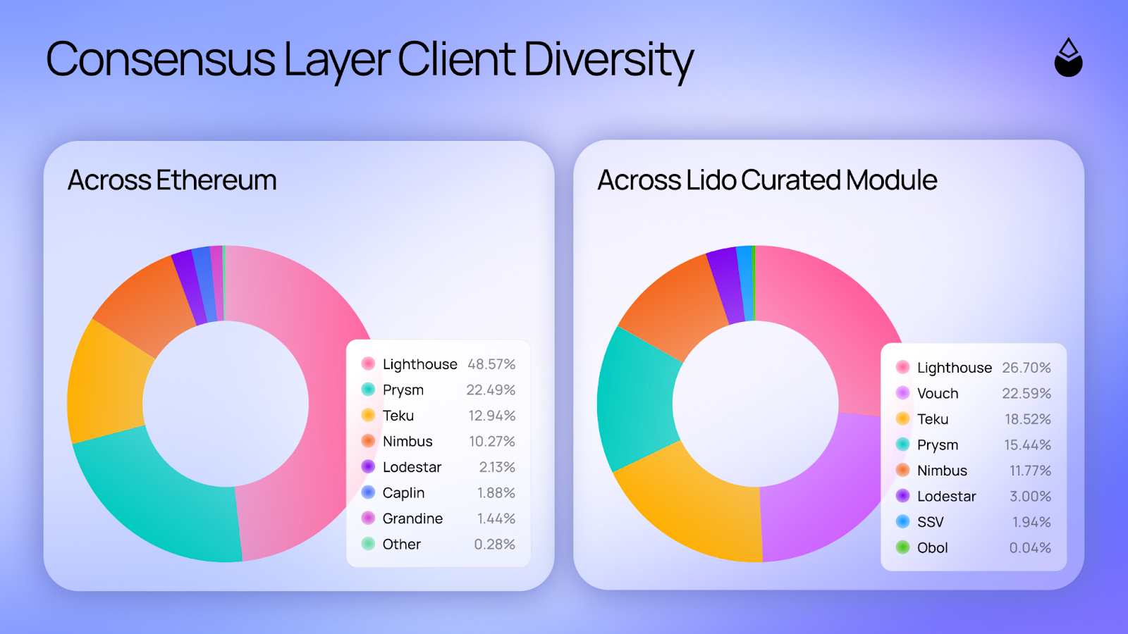 This consistent diversification across Lido’s Curated Module is a result of the Node Operators' commitment to client diversity and fault-tolerance to mitigate supermajority and correlated failure risks. By fostering balanced usage across multiple CL clients, Lido continues to strengthen Ethereum’s overall health and network resilience.