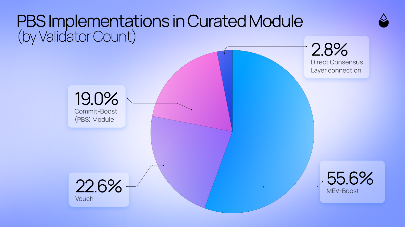 Other APM implementations active within the Lido protocol include: Vouch utilized by 22.6% of operators; Commit Boost’s PBS Module-by 19% of operators.